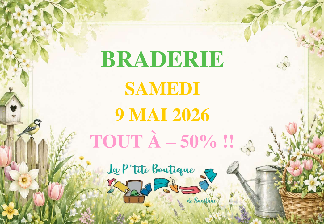 La braderie de la P’tite boutique revient le samedi 9 mai de 14h à 17h.